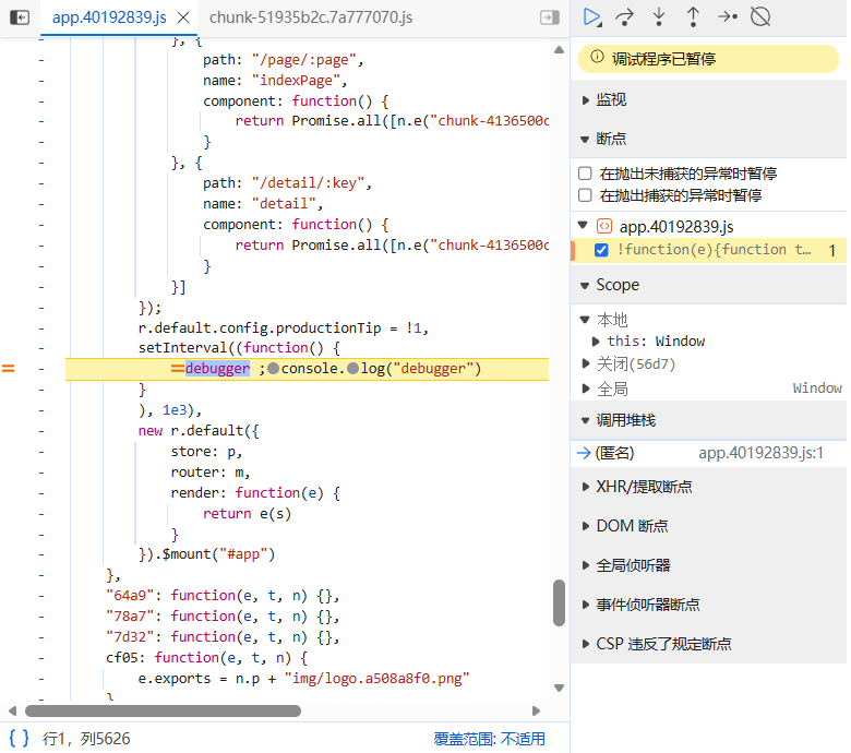 刷新页面:浏览器会自动加载修改后的本地文件,此时无限debugger就会失效。