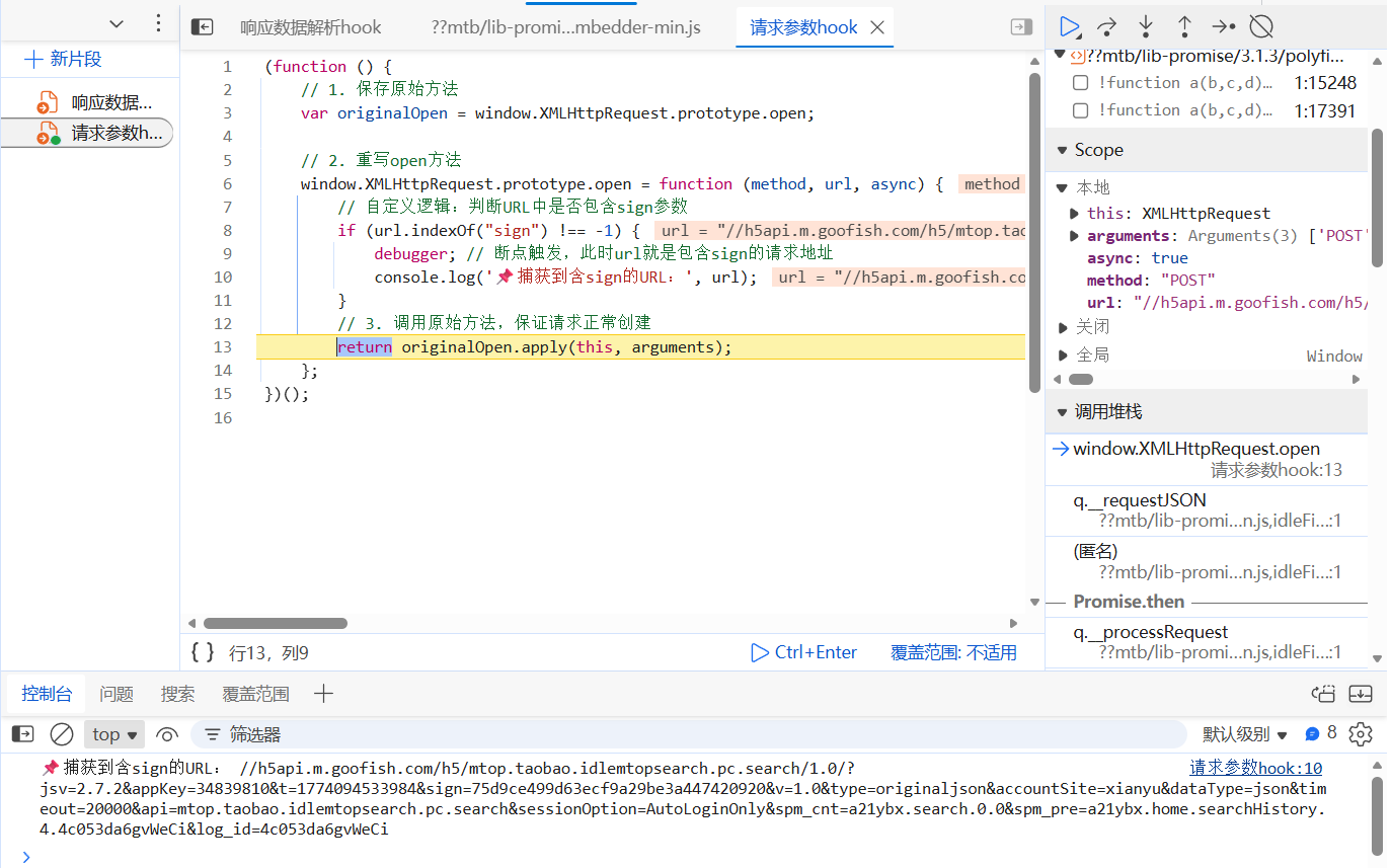 案例2:请求参数Hook——捕获URL中的加密参数(闲鱼实战)