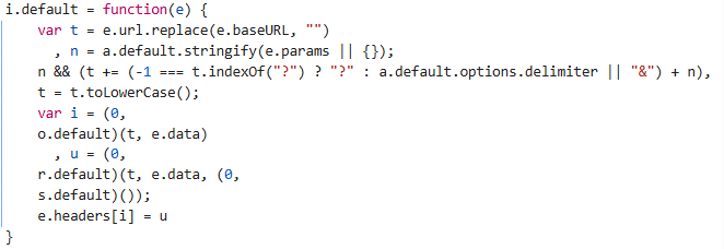 e.headers[i] = u;功能:将生成的加密键值对写入到请求头中。