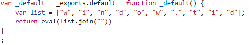 把完整代码拆成单个字符存入数组,避免直接暴露敏感代码(比如这里的 window.tid)。运行时通过 join() 还原字符串,再用 eval() 执行,本质就是返回 window.tid 。