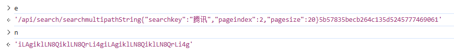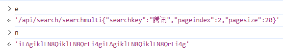 t + n = '/api/search/searchmulti{"searchKey": "腾讯","pageIndex": 2,"pageSize": 20}'第二个参数o.default(t):