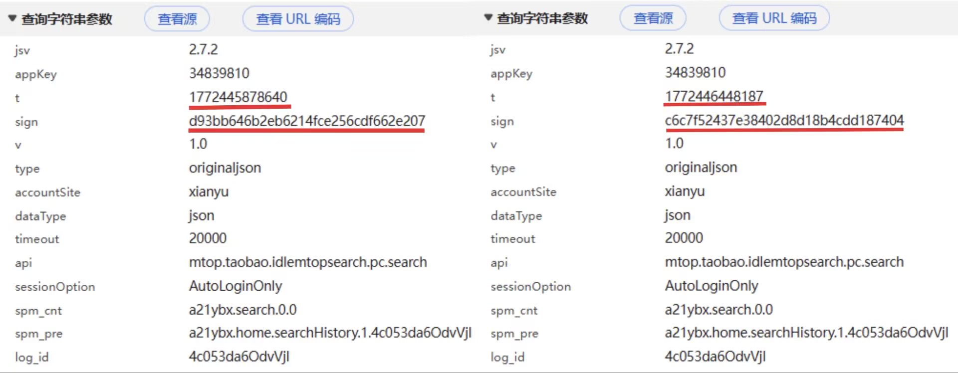 记录所有参数并对比:出现变化的参数就是逆向重点