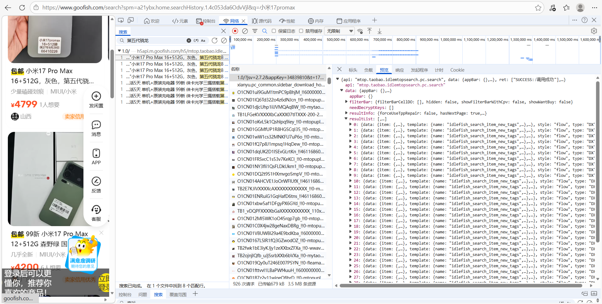 'data': '{"pageNumber":2,"keyword":"小米17promax","fromFilter":false,"rowsPerPage":30,"sortValue":"","sortField":"","customDistance":"","gps":"","propValueStr":{},"customGps":"","searchReqFromPage":"pcSearch","extraFilterValue":"{}","userPositionJson":"{}"}',